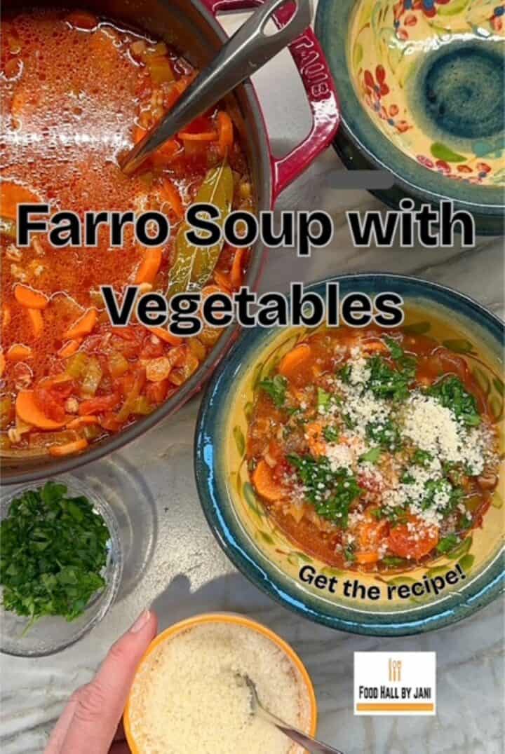 Keep in mind that whole farro will take about 10 minutes longer to soften than pearled farro. Be sure and rinse it to remove any dust before you add it to the soup.