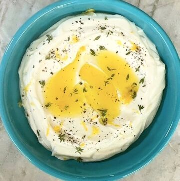 Sprinkle the top of the dip with fresh thyme leaves, cracked black pepper (affiliate link), and lemon zest, then, drizzle with a little extra honey. Serve with crostini, flatbreads, baguette slices, and pear and/or apple slices.